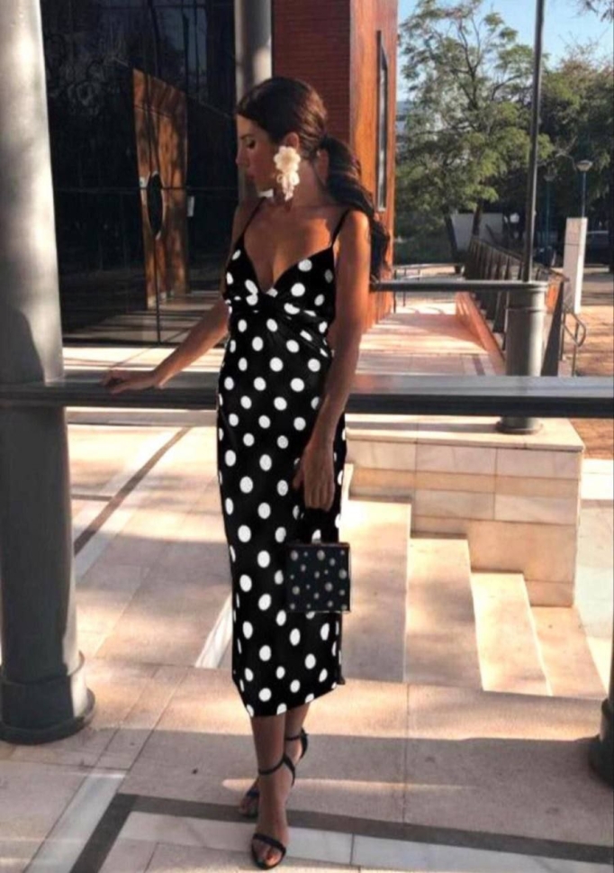 дамска рокля сатен на точки AS8129 черен