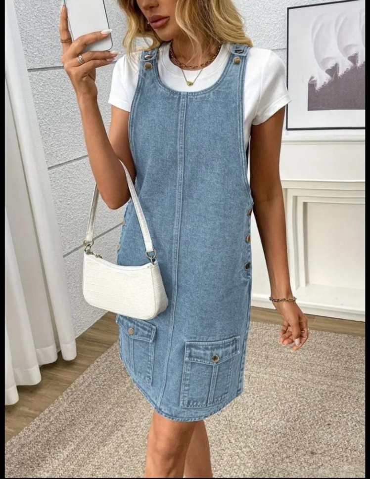 дамска рокля дънкова с джобове J78016