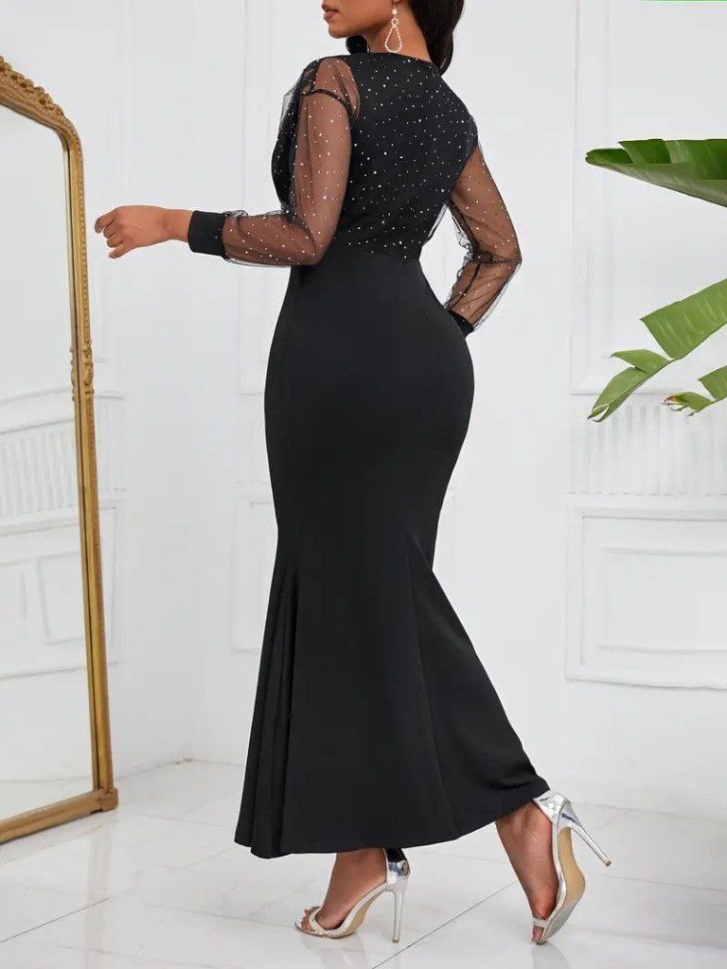 дамска рокля с декорация камъни и тюл J72338
