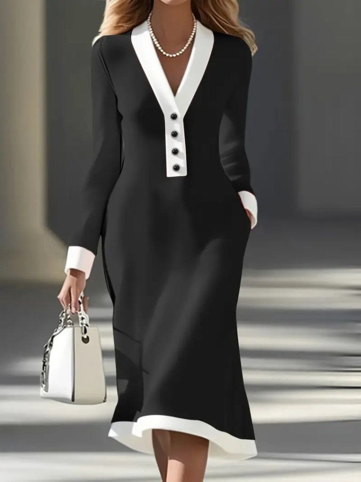 дамска рокля с V-образно делкоте и копчета J61798 черен