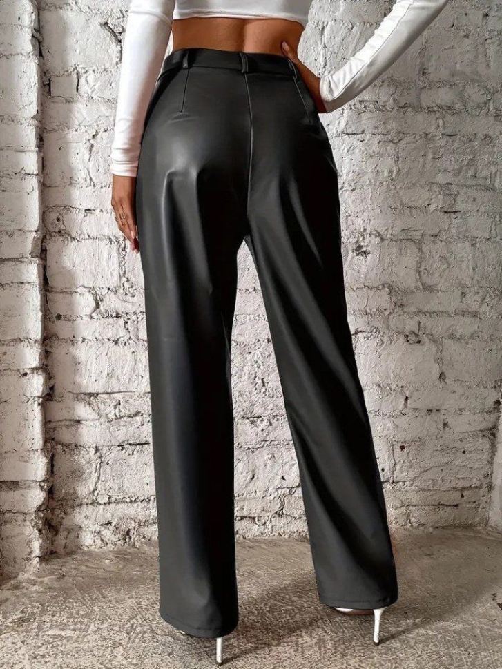 pantaloni de damă din piele ecologică cu talie înaltă J46132