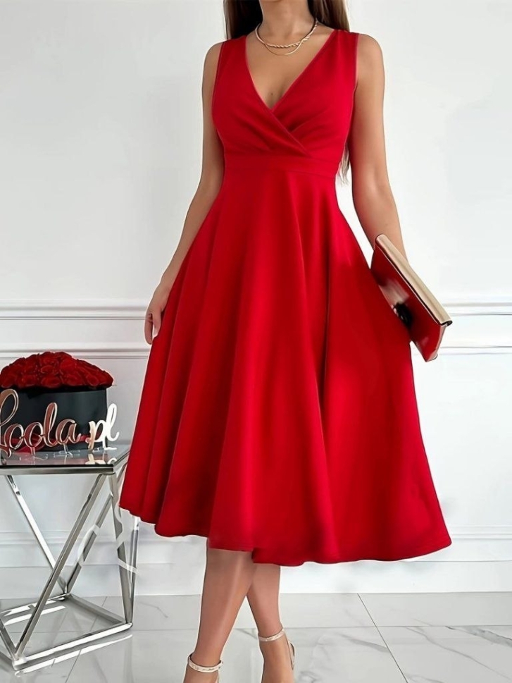 Начало РОКЛИ дамска рокля без ръкав J40073 червен